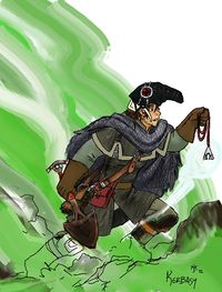 Kerbasi's (also spelled Kerbasy) a young deathpriest from the Phurai Dae tribes of the Vast. He's kind of a dork. He reads books on embalming at children's story hour, for instance, or tends to drop into awkward commentary while rubbing at the back of his neck.